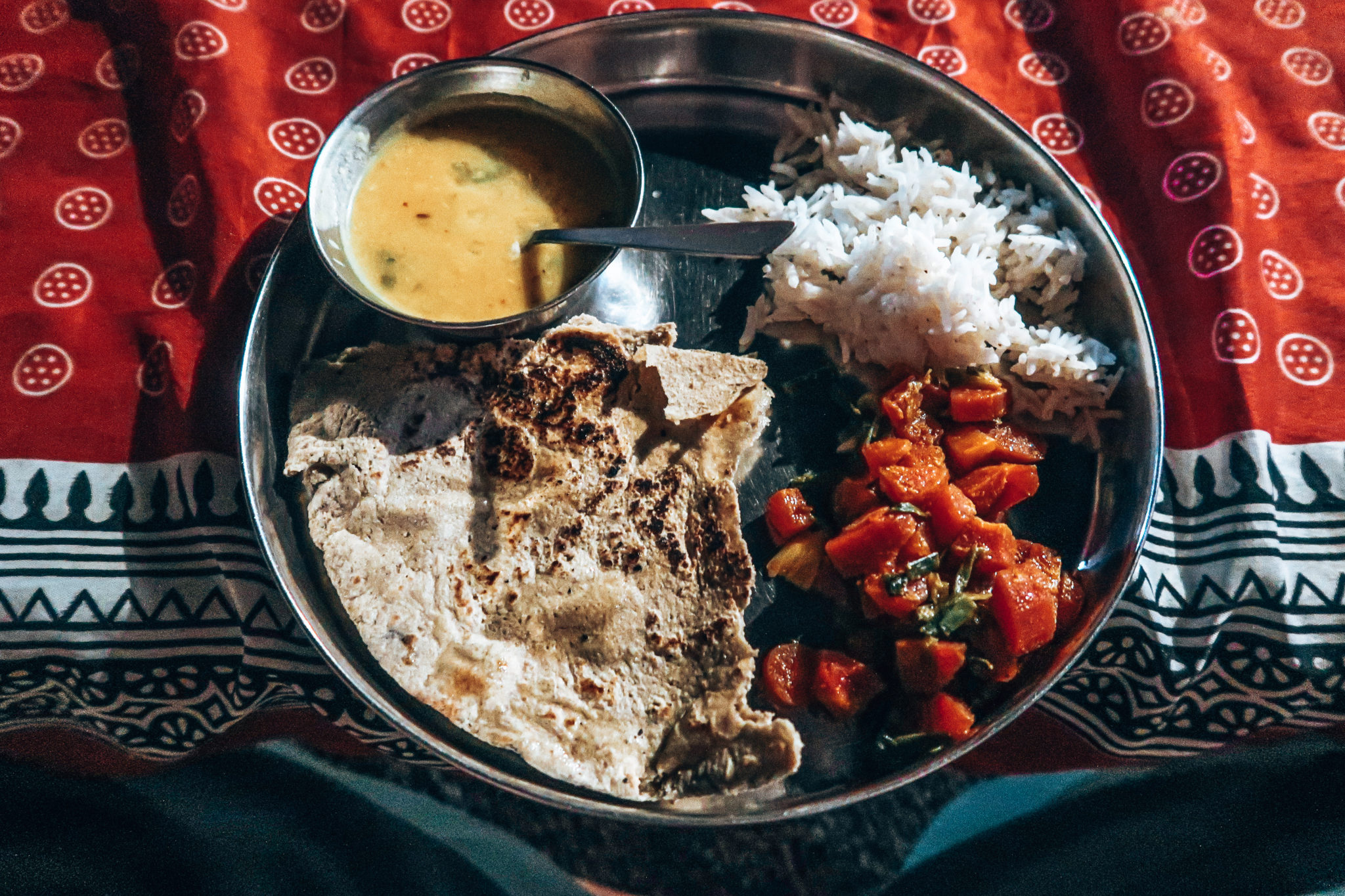 One of my biggest apprehensions was food, I’m not a fussy eater normally but since being ill in Thailand I was so cautious of what I was eating. I had absolutely nothing to worry about though – the food was delicious! We sat in the kitchen with Mamata and helped prepare the food, she is a fiercely good cook! There were six other guests at the homestay with us and it was nice to chat and make dinner together. Safe to say Josh and I don’t have a career in chapatti rolling though. Just so you are aware, all food is vegetarian and there are no eggs. Do not fear, at Chhotaram Prajapat’s homestay, you will certainly not go hungry. Josh ate 2 or 3 servings at almost every meal, such is the generosity of the hosts.