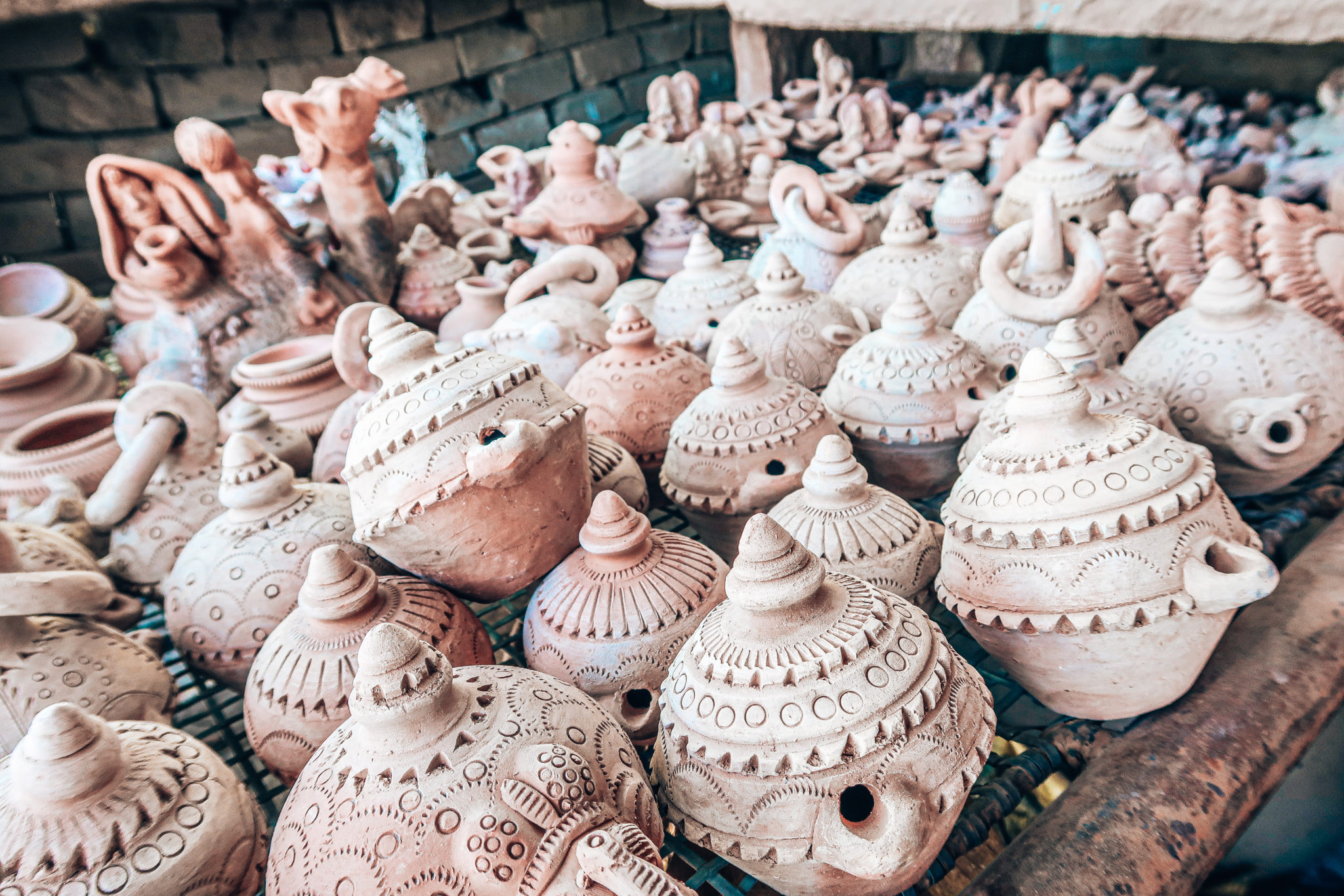 Our second day was dedicated to a Village Safari, which was super interesting – an excellent way to see the surrounding area, visit local businesses and see lots of animals! The tour involved a visit to a Bishnoi Home where we got to witness Opium tea making, a pottery workshop where we *attempted* to form our own pots on the self spun wheel, a textile factory where I seriously could have bought so many things and a block printing workshop where we did cave and buy two pieces of beautifully printed fabric – which we’ve been carrying in our backpacks ever since – one of them is currently serving as an excellent throw for our sofa bed in Hanoi. Now, it wouldn’t be a ‘safari’ without seeing some sort of wildlife, we drove along the dusty roads for quite a while and managed to see Camels, Nilgai, Goats and the local Black Buck.